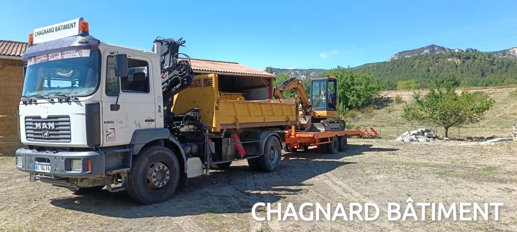 Équipée d’un camion benne et d’une pelleteuse, l’EURL CHAGNARD bâtiment vous propose ses services en travaux publics, terrassement et VRD. Qu’il s’agisse d’un terrassement pour la construction de votre habitation, d’une ou plusieurs tranchées à effectuer pour l’installation des canalisations, d’une création de chemin ou bien de tout autre travaux, l’entreprise CHAGNARD bâtiment vous accompagne dans ce chantier à ciel ouvert. Définissez votre projet et faites-nous part de vos envies, nous nous ferions un plaisir de réaliser vos travaux. Alors n’attendez plus, contactez-nous par téléphone au 06.32.14.20.16 ou par mail à l’adresse suivante : chagnardbatiment@gmail.com et demandez votre devis gratuit.